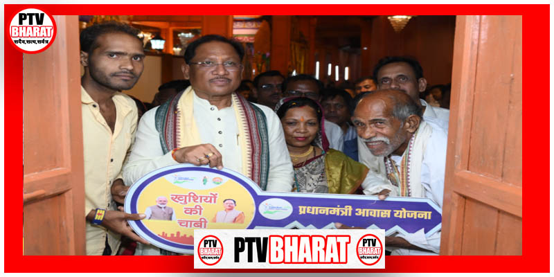 मुख्यमंत्री ने दोकड़ा में पीएम आवास योजना के हितग्राही संतु चक्रेस को चाबी देकर गृह प्रवेश कराया