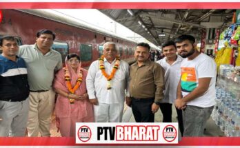 PTV BHARAT 25 JULY 2025 जय शक्तिधाम समिति स्वामी हरिगिर महाराज धर्मशाला के पिठाधीश साईं राम चंद जी के रायपुर आगमन पर श्रद्धालुगण ने रायपुर रेल्वे स्टेशन एवं शक्तिधाम मंदिर …