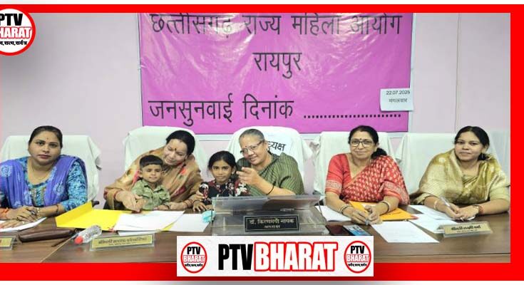 PTV BHARAT रायपुर/23 जुलाई 2025/छत्तीसगढ़ राज्य महिला आयोग की अध्यक्ष डॉ. किरणमयी नायक, श्रीमती श्रीमती लक्ष्मी वर्मा, श्रीमती सरला कोसरिया, श्रीमती ओजस्वी मंडावी एवं दीपिका शोरी ने आज छत्तीसगढ़ राज्य महिला आयोग के कार्यालय रायपुर में महिला उत्पीडन से संबंधित प्रकरणों पर सुनवाई की। आयोग के अध्यक्ष डाॅ. किरणमयी नायक की राजधानी लखनऊ में आज 337 वी एवं रायपुर जिले में 159 वी. जनसुनवाई की गई।