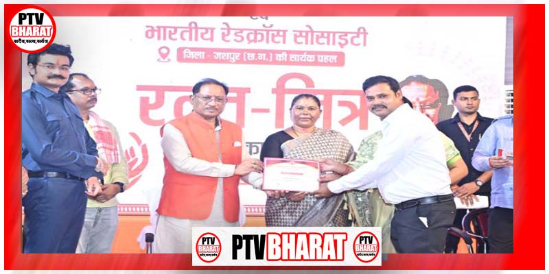 PTV BHARAT 25 JULY 2025 रायपुर, 25 जुलाई 2025/ मुख्यमंत्री श्री विष्णु देव साय ने कहा है कि रक्तदान एक पुनीत कार्य है, जो न केवल किसी जरूरतमंद को जीवनदान देता है, बल्कि मानवता के प्रति हमारी सेवा भावना का श्रेष्ठतम उदाहरण भी है। मुख्यमंत्री श्री साय आज जशपुर जिले के ग्राम बगिया में भारतीय रेडक्रॉस सोसायटी द्वारा आयोजित कार्यक्रम को संबोधित कर रहे थे।