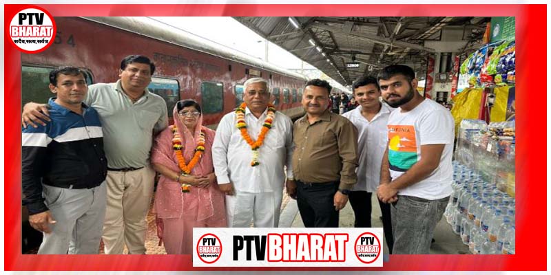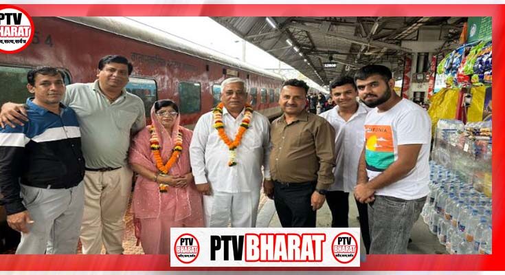 PTV BHARAT 25 JULY 2025 जय शक्तिधाम समिति स्वामी हरिगिर महाराज धर्मशाला के पिठाधीश साईं राम चंद जी के रायपुर आगमन पर श्रद्धालुगण ने रायपुर रेल्वे स्टेशन एवं शक्तिधाम मंदिर में ज़ोरदार स्वागत किया स्वागत में विशेष रूप से उपस्थित हुए थे चेतन तारवानी सुनील काशवानी रवि कासवानी पीयूष एवं बंटी रेनु तेजवानी