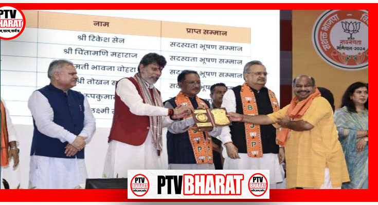 PTV BHARAT 02 AUDUST 2025 मुख्यमंत्री निवास, अटल नगर, नवा रायपुर में भव्य रूप से आयोजित उत्कृष्ट सदस्यता सम्मान समारोह में उत्तर विधानसभा के लोकप्रिय विधायक श्री पुरंदर मिश्रा जी को उनकी अद्वितीय संगठनात्मक क्षमता, निरंतर सक्रियता और समाजसेवा के प्रति समर्पण के लिए प्रदेशभर में 9 वां स्थान एवं रायपुर संभाग में प्रथम स्थान प्राप्त होने पर सम्मानित किया गया।