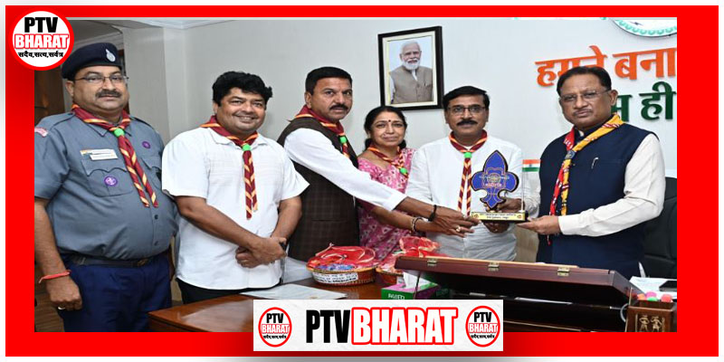 PTV BHARAT 06 AUGUST 2025 रायपुर 06 अगस्त 2025/ मुख्यमंत्री श्री विष्णुदेव साय से उनके निवास कार्यालय में भारत स्काउट्स एवं गाइड्स छत्तीसगढ़ के प्रतिनिधिमंडल ने सौजन्य मुलाकात की। प्रतिनिधिमंडल ने मुख्यमंत्री श्री साय को भारत स्काउट्स एवं गाइड्स छत्तीसगढ़ द्वारा प्रदेश भर में चलाए गए ‘एक राखी सैनिक भाइयों के नाम’ अभियान की जानकारी दी।