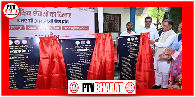PTV BHARAT 10 AUGST 2025 मुख्यमंत्री श्री विष्णुदेव साय ने कहा कि राज्य और जिले के दूरस्थ ग्रामीण क्षेत्रों में बैंकिंग सुविधाएं उपलब्ध कराना हमारी सरकार की प्राथमिकता है, ताकि किसानों, व्यापारियों और आम नागरिकों को वित्तीय सेवाएं उनके ही गाँव में सुलभ हों। उन्होंने कहा कि बैंकिंग सेवाएं न केवल आर्थिक गतिविधियों को गति देती हैं, बल्कि शासकीय योजनाओं के प्रभावी क्रियान्वयन का भी आधार बनती हैं।