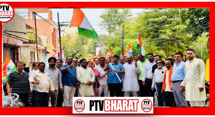 PTV BHARAT 13 AUGUST 2025 भाजपा जिला रायपुर शहर के आह्वान पर शंकर नगर वार्ड में घर घर तिरंगा अभियान के तहत पार्षद राजेश गुप्ता के नेतृत्व में तिरंगा यात्रा का आयोजन किया गया।वार्ड पार्षद राजेश गुप्ता ने बताया इस वर्ष तिरंगा यात्रा निकाली गई।स्वतंत्रता दिवस के पावन अवसर पर तिरंगा यात्रा में महिला पुरुष बच्चे स्कूल के छात्र-छात्राएं हाथों में तिरंगा लेकर यात्रा में बढ़-चढ़कर हिस्सा लिया। देशभक्ति के नारों से भारत माता की जयकारों से सारा माहौल देशभक्ति में हो गया। इस कार्यक्रम के संयोजक सुधीर चौबे हैं।