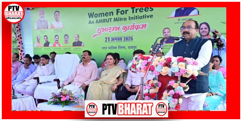 PTV BHARAT 21 AUGUST 2025 उप मुख्यमंत्री तथा नगरीय प्रशासन एवं विकास मंत्री श्री अरुण साव ने आज रायपुर के कौशल्या विहार (कमल विहार) में ‘वीमेन फॉर ट्रीज’ अभियान का प्रदेश स्तरीय शुभारंभ किया। उन्होंने अभियान का शुभारंभ करते हुए कहा कि पर्यावरण के प्रति जागरूक होकर हम सभी को ज्यादा से ज्यादा संख्या में पौधे लगाना चाहिए। राजस्व मंत्री श्री टंकराम वर्मा, रायपुर विकास प्राधिकरण के अध्यक्ष श्री नंद कुमार साहू, विधायक श्री मोतीलाल साहू और रायपुर नगर निगम की महापौर श्रीमती मीनल चौबे भी अभियान के शुभारम्भ कार्यक्रम में शामिल हुईं। सभी ने कार्यक्रम स्थल पर सिंदूर के पौधे लगाकर ‘वीमेन फॉर ट्रीज’ अभियान का राज्य स्तरीय शुभारंभ किया।