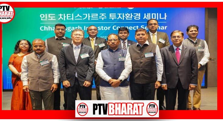 PTV BHARAT 28 AUGUST 2025 मुख्यमंत्री श्री विष्णुदेव साय ने आज दक्षिण कोरिया की राजधानी सियोल में आयोजित छत्तीसगढ़ इन्वेस्टर कनेक्ट कार्यक्रम में कोरिया इंटरनेशनल ट्रेड एसोसिएशन और निवेशकों के समक्ष छत्तीसगढ़ में निवेश की संभावनाओं की विस्तार से जानकारी देते हुए कहा कि छत्तीसगढ़ अपनी प्रो-एक्टिव एवं विकासोन्मुख औद्योगिक नीति 2024–30, प्रचुर प्राकृतिक संसाधनों और प्रशिक्षित जनशक्ति के बल पर वैश्विक निवेश और औद्योगिक सहयोग के लिए पूरी तरह तैयार है।