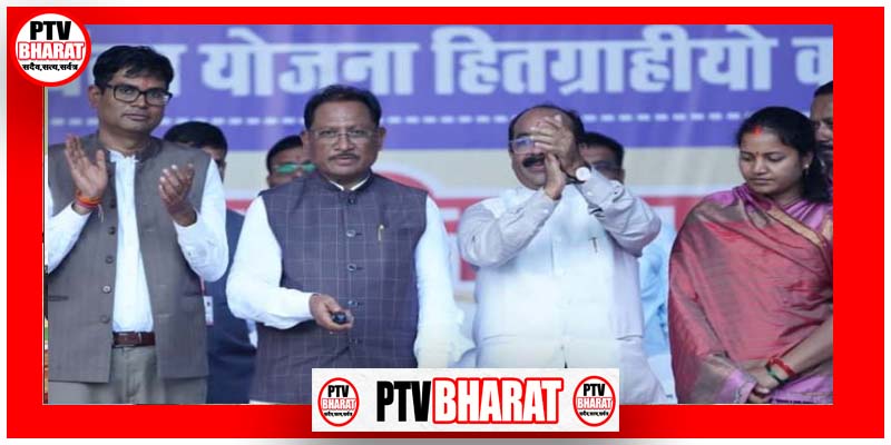 PTV BHARAT 05 SEPT 2025 मुख्यमंत्री श्री विष्णुदेव साय ने आज रायगढ़ जिले के खरसिया में आयोजित भव्य कार्यक्रम में महतारी वंदन योजना की 19वीं किस्त का भुगतान करते हुए प्रदेश की 69,15,994 महिलाओं के खातों में 1000-1000 रुपये की राशि अंतरित की। इस अवसर पर उप मुख्यमंत्री श्री अरुण साव, वित्त मंत्री श्री ओ.पी. चौधरी और महिला एवं बाल विकास मंत्री श्रीमती लक्ष्मी राजवाड़े भी उपस्थित रहीं।