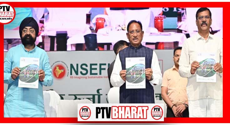 PTV BHARAT 08 SEPT 2025 प्रदेश में सौर ऊर्जा के उपभोक्ता अब केवल ऊर्जा उत्पादक ही नहीं, बल्कि ऊर्जा दाता भी बन रहे हैं। पीएम सूर्यघर मुफ्त बिजली योजना जैसी महत्वाकांक्षी पहल के माध्यम से प्रदेश स्वच्छ ऊर्जा के लक्ष्य की प्राप्ति के संकल्प को तीव्र गति से पूर्ण करने की ओर अग्रसर है। मुख्यमंत्री श्री विष्णु देव साय ने आज राजधानी रायपुर स्थित पंडित दीनदयाल उपाध्याय ऑडिटोरियम में आयोजित सौर ऊर्जा जागरूकता और प्रोत्साहन अभियान को संबोधित करते हुए यह बात कही।मुख्यमंत्री श्री साय ने इस अवसर पर सौर ऊर्जा के फायदों, पीएम सूर्यघर मुफ्त बिजली योजना और इसके अंतर्गत मिलने वाली सब्सिडी के विषय में लोगों को जानकारी देने और जागरूक करने के उद्देश्य से सूर्य रथ को हरी झंडी दिखाकर रवाना किया। साथ ही मुख्यमंत्री ने 618 उपभोक्ताओं के खातों में प्रत्येक को 30 हजार रुपये की दर से कुल 1.85 करोड़ रुपये की राज्यांश सब्सिडी का ऑनलाइन अंतरण किया।मुख्यमंत्री ने कहा कि जलवायु परिवर्तन और लगातार बढ़ता प्रदूषण हम सभी के लिए गंभीर चिंता का विषय है। उन्होंने कहा कि यह हमारा सौभाग्य है कि प्रधानमंत्री श्री नरेंद्र मोदी ने वर्ष 2070 तक नेट-जीरो कार्बन उत्सर्जन का लक्ष्य निर्धारित किया है और छत्तीसगढ़ इस लक्ष्य की प्राप्ति में पूरे समर्पण और क्षमता के साथ अपनी भूमिका निभा रहा है।