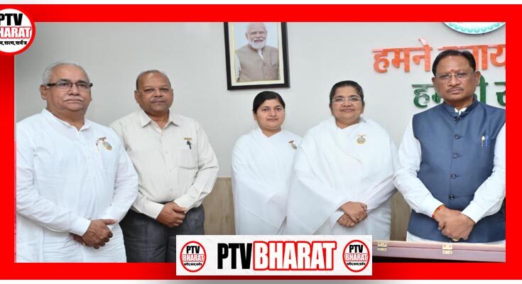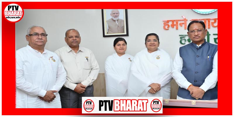PTV BHARAT 26 SEPT 2025 मुख्यमंत्री विष्णु देव साय से राजधानी रायपुर स्थित मुख्यमंत्री निवास कार्यालय में प्रजापिता ब्रह्माकुमारी ईश्वरीय विश्व विद्यालय के प्रतिनिधि मण्डल ने सौजन्य भेंट की। इस अवसर पर रायपुर की संचालिका ब्रह्माकुमारी सविता दीदी ने मुख्यमंत्री साय को आगामी 10 से 13 अक्टूबर तक माउण्ट आबू में आयोजित होने वाले वैश्विक शिखर महासम्मेलन में सम्मिलित होने हेतु आमंत्रित किया।मुख्यमंत्री साय ने प्रतिनिधि मण्डल को इस आयोजन के लिए शुभकामनाएँ दीं तथा आमंत्रण के लिए आभार व्यक्त किया। उन्होंने कहा कि ब्रह्माकुमारी संस्थान द्वारा शांति, आध्यात्मिकता और मानवता के कल्याण के लिए किए जा रहे कार्य अनुकरणीय हैं। भेंट के दौरान सविता दीदी ने प्रधानमंत्री नरेन्द्र मोदी के आगामी रायपुर प्रवास के दौरान नवा रायपुर, सेक्टर-20 स्थित शान्ति शिखर के नये भवन “एकेडमी फार ए पीसफुल वर्ल्ड- शान्ति शिखर” के लोकार्पण कार्यक्रम की जानकारी भी मुख्यमंत्री को दी।