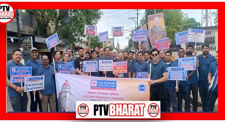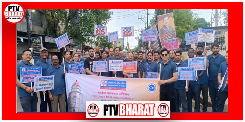 PTV BHARAT 01 OCT 2025 केंद्रीय सतर्कता आयोग के निर्देशों और सेन्ट्रल बैंक ऑफ इंडिया की केंद्रीय कार्यालय के आदेशों पर आज रायपुर के तेलीबांधा मरीन ड्राइव में बैंक द्वारा एक वॉकथॉन का आयोजन किया गया, जिसमें अंचल प्रमुख श्री बी. आर. रामा कृष्णा नाइक और क्षेत्रीय प्रमुख राज किशोर केरकेट्टा के साथ रायपुर के स्थानीय शाखाओं/कार्यालयों के सभी कर्मचारियों ने भाग लिया। इस अवसर पर सतर्कता अधिकारी एन.के. मंगल ने सभी प्रतिभागियों को सत्यनिष्ठा की शपथ दिलाई। तत्पश्चात अंचल प्रमुख के मार्गदर्शन में वॉकथॉन का आयोजन किया गया, जो तेलीबांधा शाखा पर समाप्त हुआ, जहां सतर्कता जागरूकता अभियान के तहत अन्य कार्यक्रम आयोजित किए गए। तेलीबांधा शाखा में आंचलिक और क्षेत्रीय कार्यालय, रायपुर द्वारा संयुक्त रूप से एक भाषण प्रतियोगिता का आयोजन किया गया। इस प्रतियोगिता में आंचलिक कार्यालय, क्षेत्रीय कार्यालय, जोनल ऑडिट ऑफिस और शाखाओं के कर्मचारियों ने भाग लिया। विजेताओं का चयन उप अंचल प्रमुख राजेश कुमार सिंह के मार्गदर्शन में गठित समिति द्वारा किया गया। इसके बाद, विजेताओं को अंचल और क्षेत्रीय पप्रमुखों द्वारा पुरस्कार प्रदान किए गए।इस कार्यक्रम में सुनीत राणा और नरेश दुबे, दोनों सहायक महा प्रबंधक, बड़ी संख्या में मुख्य प्रबंधक, शाखा प्रमुख और स्थानीय शाखाओं/कार्यालयों के कर्मचारियों ने उत्साह के साथ भाग लिया।