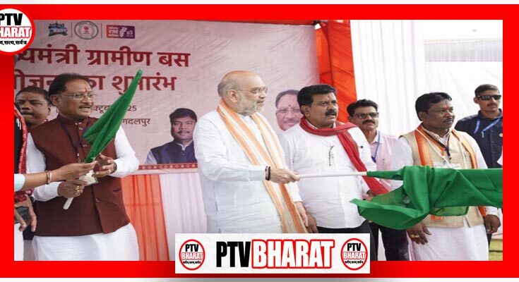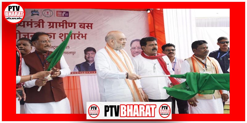 PTV BHARAT 04 OCT 2025 बस्तर से नक्सलवाद का अंत शीघ्र होगा और क्षेत्र में शांति स्थापित कर हम विकास के नए आयाम गढ़ेंगे। बस्तर और सरगुजा क्षेत्र के सुदूर अंचलवासी अब विकास से विश्वास तक की यात्रा में सहभागी बनकर विकसित छत्तीसगढ़ के निर्माण में अपनी भूमिका निभाएंगे। केंद्रीय गृह मंत्री अमित शाह ने जगदलपुर से मुख्यमंत्री ग्रामीण बस योजना का शुभारंभ करते हुए यह बात कही। इस अवसर पर केंद्रीय गृह मंत्री अमित शाह और मुख्यमंत्री विष्णु देव साय ने यात्री बसों को हरी झंडी दिखाकर रवाना किया और क्षेत्रवासियों को इस विशेष पहल के लिए शुभकामनाएं दीं।केंद्रीय गृह मंत्री शाह ने कहा कि छत्तीसगढ़ के विकास के लिए डबल इंजन की सरकार प्रतिबद्धता के साथ काम कर रही है। लाल आतंक की समाप्ति प्रदेश के सुदूर इलाकों को विकास की मुख्यधारा से जोड़ेगी। आज प्रारंभ हुई यात्री बस सेवा हमारे नागरिकों के जीवन में नई ऊर्जा का संचार करेगी। उन्होंने कहा कि अब 250 गांवों के लोग अपने निकटवर्ती शासकीय कार्यालयों, स्कूलों और अस्पतालों तक आसानी से पहुंच पाएंगे।मुख्यमंत्री विष्णु देव साय ने क्षेत्रवासियों को बधाई देते हुए कहा कि हमारी सरकार जनसुविधाओं को बढ़ाने के लिए तेजी से कार्य कर रही है। मुख्यमंत्री ग्रामीण बस योजना का उद्देश्य यात्री बस सुविधा से वंचित गांवों में बसों का परिचालन सुनिश्चित करना है। इससे लोग कम लागत में अपने गंतव्य तक समय पर पहुंच सकेंगे। रोज़मर्रा के कामकाज, शासकीय कार्यों और अन्य गतिविधियों में भी सहूलियत बढ़ेगी।