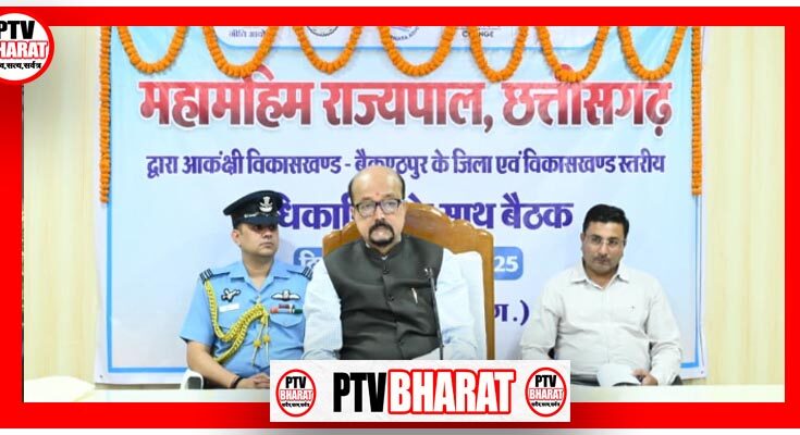 PTV BHARAT 07 OCT 2025 छत्तीसगढ़ के राज्यपाल रमेन डेका ने आज कोरिया के कलेक्ट्रेट सभा कक्ष में बैकुण्ठपुर आकांक्षी ब्लॉक में संचालित विभिन्न योजनाओं की समीक्षा की। श्री डेका ने अधिकारियों को निर्देश दिया कि केवल बैठकों और रिपोर्ट पर निर्भर न रहें, बल्कि फील्ड में जाकर वस्तुस्थिति का निरीक्षण करें। उन्होंने कहा कि स्वास्थ्य और शिक्षा क्षेत्र विकास की सबसे महत्वपूर्ण प्राथमिकताएँ है। राज्यपाल ने आकांक्षी ब्लॉक कार्यक्रम के तहत 40 संकेतकों के अनुसार कार्यों की समीक्षा की। राज्यपाल ने कहा कि कुपोषण, महिला स्वास्थ्य और कैंसर जैसी बीमारियों की रोकथाम के लिए फील्ड स्तर पर लगातार काम करना होगा। उन्होंने निर्देश दिए कि आंगनवाड़ी और स्कूलों में गुणवत्तापूर्ण सेवाएँ, साफ पेयजल और शौचालय की व्यवस्था सुनिश्चित की जाए। कुपोषण, एनीमिया जैसी गम्भीर बीमारियों के रोकथाम के लिए लगातार गांवों का दौरा करें और समुचित समाधान करने के निर्देश दिए। राज्यपाल ने ग्रामीणों को बंजर भूमि पर डबरी निर्माण, बागवानी और सब्जी की खेती के माध्यम से जीवन स्तर सुधारने और आर्थिक लाभ बढ़ाने के लिए प्रेरित किया। उन्होंने बच्चों के अध्ययन के लिए घरों में विशेष कक्ष तैयार करने के लिए ग्रामीणों को प्रेरित करने की सलाह दी।
