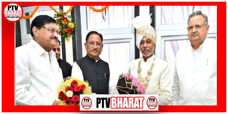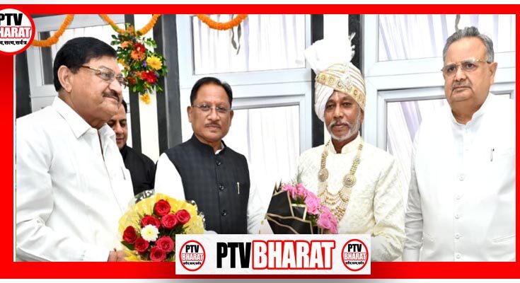 PTV BHARAT 18 OCT 2025 मुख्यमंत्री विष्णुदेव साय कौशल विकास, तकनीकी शिक्षा एवं रोजगार मंत्री गुरु खुशवंत साहेब के नवा रायपुर स्थित नवीन शासकीय आवास के गृहप्रवेश कार्यक्रम में शामिल हुए। मुख्यमंत्री साय के धर्मगुरु गुरु बालदास साहेब जी को उनके जन्मदिन की बधाई एवं शुभकामनाएं देते हुए उन्हें शॉल व पुष्पगुच्छ भेंट किया। इस अवसर पर विधानसभा अध्यक्ष डॉ. रमन सिंह, खाद्य मंत्री दयालदास बघेल सहित अन्य गणमान्यजन उपस्थित थे।