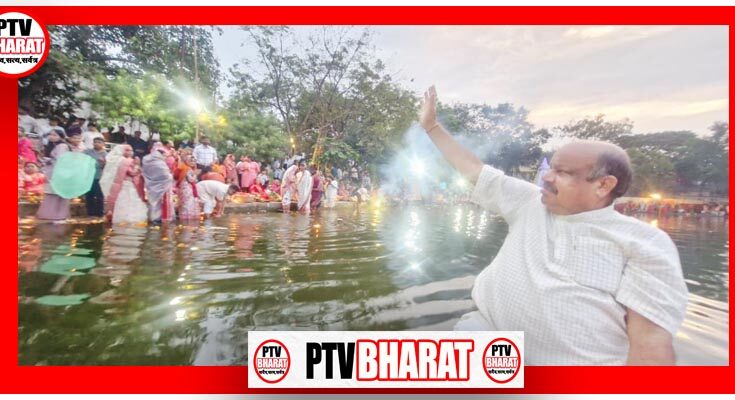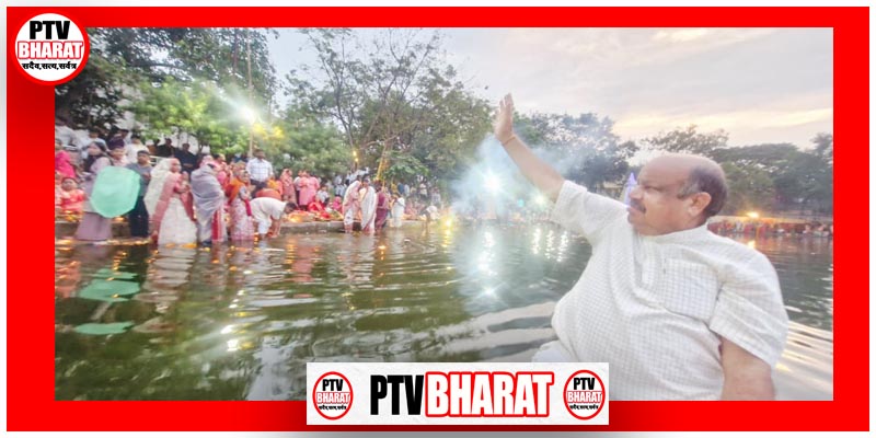 PTV BHARAT 29 OCT 2025 रायपुर : समता कॉलोनी के आमा तालाब में छठ महापर्व की भोर कुछ अलग ही दृश्य लेकर आई। जल में डूबते-उतरते दीपों के बीच, लहरों पर चलती आस्था की नाव पर विधायक पुरंदर मिश्रा स्वयं सूर्योदय से पहले उपस्थित हुए। पांच बजे की ठंडी हवा में जब व्रती सूर्यदेव को अर्घ्य अर्पित कर रहे थे, ठीक उसी समय नाव पर सवार विधायक उनके बीच पहुँचकर शुभकामनाओं की रोशनी लेकर आए।