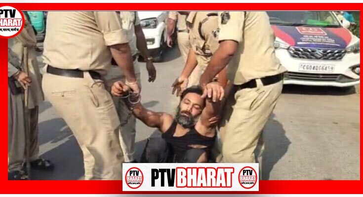 PTV BHARAT 09 NOVEMBER 2025 रायपुर। तोमर बंधुओं के मामले में रायपुर पुलिस को बड़ी सफलता मिली है। पुलिस ने कार्रवाई करते हुए करीब 6 महीने से फरार हिस्ट्रीशीटर वीरेंद्र सिंह तोमर उर्फ रूबी को गिरफ्तार कर लिया है। करोड़ों की अवैध वसूली, हथियार और हिंसक वारदातों में शामिल यह आरोपी जून महीने से पुलिस की पकड़ से बाहर था। पुलिस ने उसे ग्वालियर (मध्यप्रदेश) से गिरफ्तार किया है। गिरफ्तारी के बाद जब पुलिस ने शहर में उसका जुलूस निकाला, तो उससे नारा लगवाया गया “अपराध करना पाप है, पुलिस हमारा बाप है।”