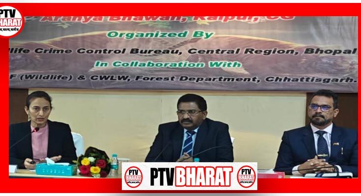 PTV BHARAT 14 NOV 2025 भारत सरकार के पर्यावरण, वन एवं जलवायु परिवर्तन मंत्रालय, वन्यजीव अपराध नियंत्रण ब्यूरो, मध्य क्षेत्र मुख्यालय भोपाल, छत्तीसगढ़ वन विभाग तथा विभिन्न राज्यों के वन विभागों द्वारा आज नवा रायपुर के अरण्य भवन में वन्यजीव अपराध रोकथाम पर अन्तर एजेंसी की बैठक आयोजित की गई। बैठक में रेलवे, पुलिस, वन विभाग, केंद्रीय एजेंसियों तथा विभिन्न विशेषज्ञ संस्थाओं के अधिकारी शामिल हुए।बैठक में वन बल प्रमुख व्ही श्रीनिवास राव, मध्यप्रदेश, छत्तीसगढ़, उड़ीसा तथा झारखंड के वरिष्ठ वन अधिकारी, पुलिस अधिकारी, वन्यजीव अपराध नियंत्रण ब्यूरो के अधिकारी, फॉरेंसिक विशेषज्ञ सहित अन्य संबंधित विभागों के अधिकारी मौजूद रहे तथा वीडियो कॉन्फ्रेंसिंग के माध्यम से विभिन्न राज्यों के 35 अधिकारी भी जुड़े।बैठक में वन्यजीव अपराधों की रोकथाम, अपराधियों पर प्रभावी कार्रवाई, तस्करी नेटवर्क की पहचान, अदालतों में केस प्रस्तुत करने की प्रक्रिया और विभिन्न विभागों के बीच बेहतर समन्वय पर विस्तृत चर्चा की गई। देशभर में बढ़ते वन्यजीव अपराधों को देखते हुए सभी विभागों ने अपने-अपने सुझाव और अनुभव को साझा किया।