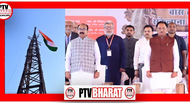 PTV BHARAT रायपुर, 15 नवंबर 2025/ बेमेतरा जिले के ग्राम कठिया में कल एक ऐतिहासिक क्षण देखने को मिला, जब छत्तीसगढ़ बांस तीर्थ संकल्पना सम्मलेन कार्यक्रम के तहत भारत का सबसे बड़ा और 140 फीट ऊँचा बैम्बू टावर समर्पित “छत्तीसगढ़ बाँस तीर्थ संकल्पना समारोह” का भव्य आयोजन हुआ। यह आयोजन न केवल बेमेतरा बल्कि पूरे छत्तीसगढ़ के लिए गौरव का विषय बना। इस भव्य समारोह में मुख्यमंत्री विष्णु देव साय, उपमुख्यमंत्री अरुण साव तथा कैबिनेट मंत्री दयालदास बघेल की विशेष उपस्थिति रही ।मुख्यमंत्री विष्णु देव साय ने 140 फीट ऊँचे बैम्बू टावर पर तिरंगा फहराते हुए कहा कि यह संरचना केवल बाँस का निर्माण नहीं, बल्कि छत्तीसगढ़ की परंपरा, कौशल, नवाचार और व्यापक संभावनाओं का प्रतीक है। उन्होंने बाँस का पौधा रोपण कर पर्यावरण संरक्षण तथा बाँस आधारित कृषि के प्रसार की अपील की। मुख्यमंत्री ने समारोह स्थल पर स्थापित बाँस उत्पाद निर्माण इकाइयों, फैक्ट्रियों और प्रोसेसिंग केंद्रों का अवलोकन किया तथा ग्रामीणों और कारीगरों से संवाद कर उनकी आजीविका के बारे में विस्तार से जानकारी ली।मुख्यमंत्री ने कहा कि छत्तीसगढ़ आज विकास, नवाचार और प्रगति के नए आयाम रच रहा है। विश्व का सबसे ऊँचा बैम्बू टावर बनाकर राज्य ने राष्ट्रीय स्तर पर अपनी विशिष्ट पहचान स्थापित की है। उन्होंने कहा कि बाँस आधारित उद्योग, ग्रामीण अर्थव्यवस्था, हस्तशिल्प, एग्रो इंडस्ट्री और आधुनिक निर्माण तकनीक इन सभी क्षेत्रों में अपार संभावनाएँ पैदा कर रहे हैं। सरकार किसानों, कारीगरों और युवाओं के लिए बड़े पैमाने पर रोजगार सृजन की योजनाएँ लागू कर रही है।