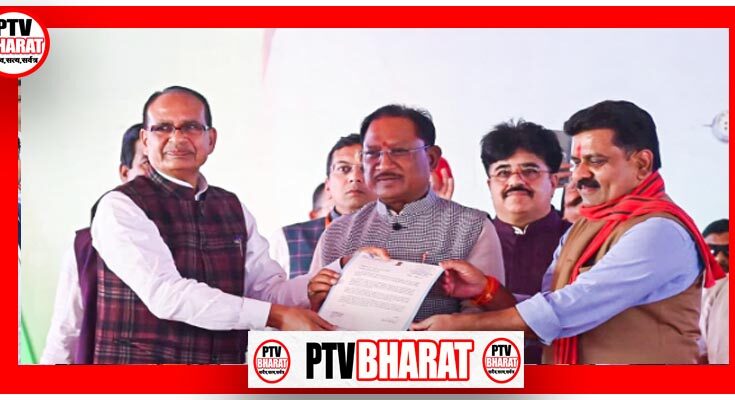 PTV BHARAT 19 NOVEMBER 2025 रायपुर, रायपुर 19 नवंबर 2025/केंद्रीय कृषि एवं किसान कल्याण तथा ग्रामीण विकास मंत्री शिवराज सिंह चौहान ने धमतरी में आयोजित राज्यस्तरीय समारोह में 2,225 करोड़ रुपये की ग्रामीण सड़क परियोजनाओं, मखाना बोर्ड का विस्तार, प्रधानमंत्री किसान सम्मान निधि के अंतर्गत किसानों को प्रत्यक्ष भुगतान और अनेक विकासपरक घोषणाओं का औपचारिक शुभारंभ किया। प्रधानमंत्री श्री नरेंद्र मोदी द्वारा कोयंबटूर से प्रधानमंत्री किसान सम्मान निधि की 21वीं किस्त का देशव्यापी वितरण और छत्तीसगढ़ के 25 लाख किसानों के खातों में 500 करोड़ रुपये का सीधा हस्तांतरण इस आयोजन का मुख्य आकर्षण रहा। हज़ारों किसानों और ग्रामीण प्रतिनिधियों की उपस्थिति में सम्पन्न इस समारोह ने राज्य के विकास पथ को नई दिशा प्रदान की। इस अवसर पर छत्तीसगढ़ के धमतरी में राज्यस्तरीय समारोह का आयोजन किया गया, जिसमें केंद्रीय कृषि एवं किसान कल्याण तथा ग्रामीण विकास मंत्री शिवराज सिंह चौहान, छत्तीसगढ़ के मुख्यमंत्री विष्णु देव साय, विधानसभा अध्यक्ष डॉ. रमन सिंह, केंद्रीय राज्य मंत्री तोखन साहू, उप मुख्यमंत्री विजय शर्मा, राज्य के कृषि मंत्री रामविचार नेताम, मंत्री दयालदास बघेल, टंकराम वर्मा सहित अनेक जनप्रतिनिधि उपस्थित थे।