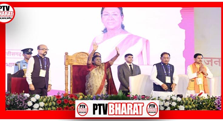PTV BHARAT रायपुर 20 नवंबर 2025/राष्ट्रपति श्रीमती द्रौपदी मुर्मु ने आज छत्तीसगढ़ सरकार द्वारा छत्तीसगढ़ के अंबिकापुर, सरगुजा में आयोजित ‘जनजातीय गौरव दिवस’ समारोह में अपनी गरिमामयी उपस्थिति दर्ज कराई।