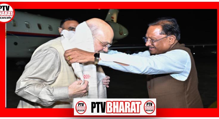 PTV BHARAT रायपुर 28 नवंबर 2025/ केंद्रीय गृह मंत्री अमित शाह के रायपुर आगमन पर स्वामी विवेकानंद विमानतल में मुख्यमंत्री विष्णु देव साय ने आत्मीय स्वागत किया।