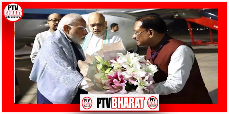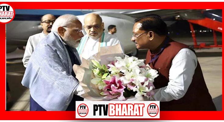 रायपुर में PM मोदी का मुख्यमंत्री विष्णुदेव साय ने किया भव्य स्वागत