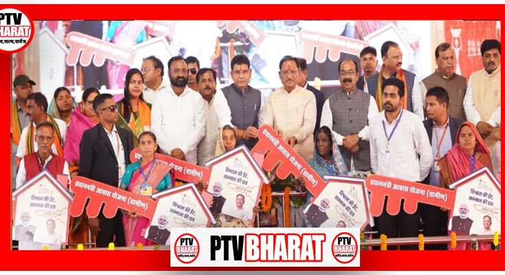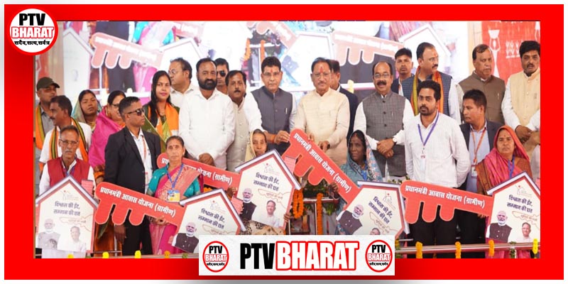 PTV BHARAT 05 DECEMBER 2025 मुख्यमंत्री विष्णु देव साय ने आज बलौदाबाजार-भाटापारा जिले के ग्राम सुहेला में आयोजित कार्यक्रम में 195.26 करोड़ रुपये के विकास कार्यों की सौगात दी। कार्यक्रम में उन्होंने प्रधानमंत्री आवास योजना (ग्रामीण) के 1073 हितग्राहियों को आवास की चाबी, प्रधानमंत्री उज्ज्वला योजना के अंतर्गत तीन हजार महिलाओं को गैस कनेक्शन, प्रधानमंत्री स्वामित्व योजना अंतर्गत पाँच हजार किसानों को अधिकार अभिलेख तथा विभिन्न योजनाओं के अंतर्गत हितग्राहियों को सामग्री और राशि के चेक प्रदान किए। मुख्यमंत्री विष्णु देव साय ने कहा कि प्रधानमंत्री नरेन्द्र मोदी जी का ध्येय है कि हर घर में पक्का मकान, शौचालय, शुद्ध पेयजल और प्रधानमंत्री सूर्यघर मुफ्त बिजली योजना का लाभ पहुंचे। इसी उद्देश्य को साकार करने के लिए हमारी सरकार जनता के हित में वचनबद्ध होकर कार्य कर रही है। उन्होंने कहा कि छत्तीसगढ़ को पृथक राज्य बने 25 वर्ष पूर्ण हो रहे हैं और हम रजत जयंती वर्ष मना रहे हैं। सरकार बनने से पहले प्रधानमंत्री मोदी की गारंटी में जो वादे किए गए थे, उन्हें हम एक-एक कर पूरा कर रहे हैं।