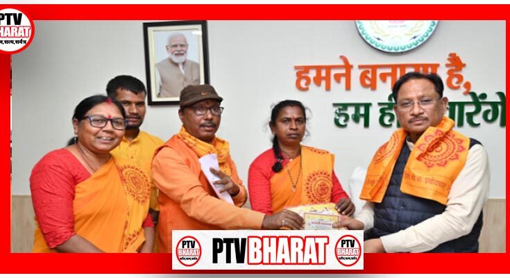 PTV BHARAT 05 DEC 2025 रायपुर 5 दिसंबर 2025/ मुख्यमंत्री विष्णु देव साय से विगत दिवस राजधानी रायपुर स्थित मुख्यमंत्री निवास कार्यालय में अखिल विश्व गायत्री परिवार के प्रतिनिधिमण्डल ने सौजन्य मुलाकात की। प्रतिनिधिमण्डल ने मुख्यमंत्री साय को आगामी 10 दिसंबर से 13 दिसंबर तक जशपुर जिले के अंतर्गत नगर पंचायत बगीचा में आयोजित होने वाले 108 कुण्डीय गायत्री महायज्ञ में शामिल होने हेतु आमंत्रित किया।मुख्यमंत्री ने आमंत्रण के लिए गायत्री परिवार के सदस्यों का धन्यवाद देते हुए आयोजन की सफलता के लिए शुभकामनाएँ दीं। इस अवसर पर भानु यादव, श्रीमती मुक्ता देवी, श्रीमती रीना बरला, श्री मिकलेश यादव एवं अन्य सदस्य उपस्थित थे।