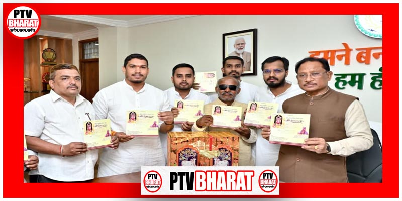 PTV BHARAT 06 NOV 2025 मुख्यमंत्री विष्णु देव साय से विगत दिवस राजधानी रायपुर स्थित मुख्यमंत्री निवास कार्यालय में प्यारे श्री राधाकृष्ण संस्कार मंच, जामुल के प्रतिनिधिमण्डल ने सौजन्य भेंट की। इस अवसर पर मुख्यमंत्री साय ने आगामी श्री रामकथा कार्यक्रम हेतु तैयार किए गए पोस्टर एवं कैलेंडर का विधिवत विमोचन किया।प्रतिनिधिमण्डल ने मुख्यमंत्री साय को बताया कि श्री रामकथा का आयोजन 28 दिसंबर 2025 से 06 जनवरी 2026 तक दुर्ग जिले के जामुल नगर में किया जाएगा। प्रतिनिधिमण्डल ने मुख्यमंत्री साय को इस पावन आयोजन में सादर आमंत्रित किया।मुख्यमंत्री साय ने आमंत्रण के लिए प्यारे राधाकृष्ण संस्कार मंच, जामुल के सदस्यों का हृदय से आभार व्यक्त किया एवं आयोजन की सफलता हेतु शुभकामनाएँ दीं।