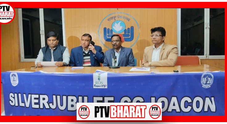 PTV BHARAT 07 JAN 2026 रायपुर। छत्तीसगढ़ रायपुर ऑर्थोपेडिक एसोशिएसन एवं बिलासपुर ऑर्थोपेडिक एसोशिएसन एवं रायपुर आर्थोपेडिक सुसायटी के तत्वाधान में सिल्वर जुबली सम्मेलन 9,10 एवं 11 जनवरी को VIP रोड स्थित ओमाया गार्डन में भव्य रूप से आयोजित किया जा रहा है। इस तीन दिवसीय ऐतिहासिक सम्मेलन में छत्तीसगढ़ सहित देश के विभिन्न राज्यों से प्रसिद्ध ऑर्थोपेडिक विशेषज्ञ, वरिष्ठ सर्जन, प्रोफेसर एवं युवा चिकित्सक भाग लेंगे।