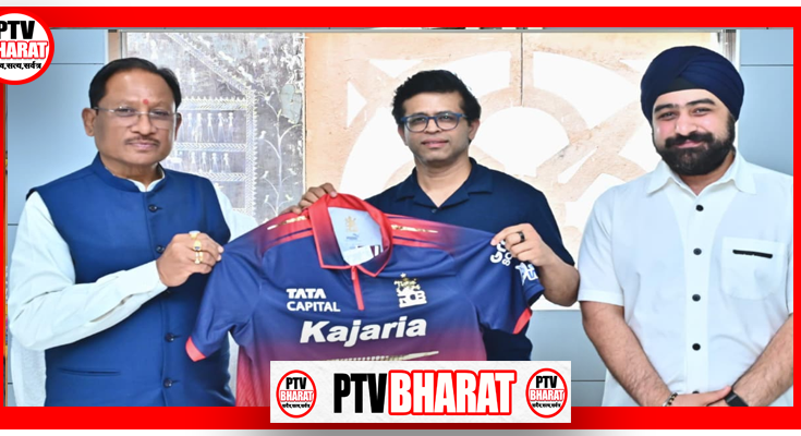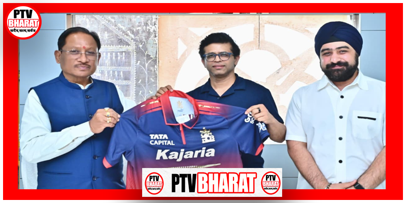 PTV BHARAT 13 JANUARY 2026 रायपुर -रॉयल चैलेंजर्स बेंगलुरु (RCB) की ओर से मुख्यमंत्री विष्णु देव साय को टीम का आधिकारिक जर्सी भेंट कर रायपुर में प्रस्तावित आईपीएल मैच के आयोजन के लिए औपचारिक रूप से आमंत्रित किया गया। इस अवसर पर आरसीबी के वाइस प्रेसिडेंट श्री राजेश मेनन तथा भारतीय क्रिकेट कंट्रोल बोर्ड (BCCI) के संयुक्त सचिव श्री प्रभतेज सिंह भाटिया उपस्थित थे। मुख्यमंत्री विष्णु देव साय ने इस पहल का स्वागत करते हुए कहा कि छत्तीसगढ़ में अंतरराष्ट्रीय स्तर के खेल आयोजनों से युवाओं में खेल के प्रति उत्साह बढ़ेगा, खेल अधोसंरचना को मजबूती मिलेगी और राज्य को राष्ट्रीय खेल मानचित्र पर नई पहचान मिलेगी। उन्होंने कहा कि राज्य सरकार खेल और युवा प्रतिभाओं के प्रोत्साहन के लिए हरसंभव सहयोग देने के लिए प्रतिबद्ध है। यह प्रस्ताव रायपुर को एक उभरते हुए स्पोर्ट्स डेस्टिनेशन के रूप में स्थापित करने की दिशा में एक महत्वपूर्ण कदम माना जा रहा है।