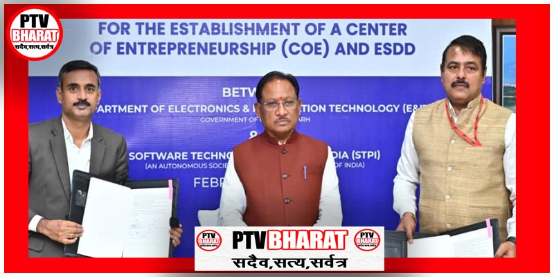 PTV BHARAT 10 FEBRUARY 2026 रायपुर। छत्तीसगढ़ प्राकृतिक संसाधनों से समृद्ध राज्य है। हमारा लक्ष्य है कि छत्तीसगढ़ ज्ञान, तकनीक और नवाचार के क्षेत्र में भी देश में अपनी विशिष्ट पहचान बनाए। छत्तीसगढ़ सरकार राज्य को ज्ञान, तकनीक और नवाचार के क्षेत्र में अग्रणी बनाने की दिशा में निरंतर आगे बढ़ रही है।आधुनिक अधोसंरचना, प्रभावी ई-गवर्नेंस प्रणाली और निवेश-अनुकूल नीतियों के चलते छत्तीसगढ़ आज आईटी, आईटीईएस एवं इमरजिंग टेक्नोलॉजी आधारित उद्योगों के लिए एक भरोसेमंद और आकर्षक गंतव्य के रूप में उभर रहा है। मुख्यमंत्री विष्णु देव साय ने आज अपने निवास कार्यालय में इलेक्ट्रॉनिक्स एवं सूचना प्रौद्योगिकी विभाग, छत्तीसगढ़ शासन एवं सॉफ्टवेयर टेक्नोलॉजी पार्क्स ऑफ इंडिया (एसटीपीआई) के मध्य हुए महत्वपूर्ण समझौता ज्ञापन (एमओयू) उपरांत कार्यक्रम को संबोधित करते हुए यह बात कही। मुख्यमंत्री साय ने कहा कि युवाओं में उद्यमिता विकसित करने और उन्हें आईटी एवं आईटीईएस जैसे क्षेत्रों में विश्वस्तरीय अवसर राज्य के भीतर ही उपलब्ध कराने की दिशा में यह पहल की गई है। इस एमओयू के तहत राज्य में सेंटर ऑफ एंटरप्रेन्योरशिप (CoE) एवं इलेक्ट्रॉनिक्स सिस्टम डिजाइन एंड डेवलपमेंट (ESDD) सेंटर की स्थापना की जाएगी। उन्होंने कहा कि प्रस्तावित सेंटर ऑफ एंटरप्रेन्योरशिप के माध्यम से आर्टिफिशियल इंटेलिजेंस, वन एवं औषधीय उत्पाद आधारित मेडटेक, स्मार्ट सिटी समाधान तथा स्मार्ट कृषि जैसे चार महत्वपूर्ण क्षेत्रों में नवाचार और स्टार्ट-अप को प्रोत्साहन मिलेगा। साथ ही, एक अत्याधुनिक इलेक्ट्रॉनिक्स सिस्टम डिजाइन एंड डेवलपमेंट (ESDD) सेंटर की स्थापना की जाएगी, जो प्रति वर्ष लगभग 30 से 40 हार्डवेयर स्टार्ट-अप और एमएसएमई को प्रोडक्ट डिजाइन, प्रोटोटाइपिंग, कौशल विकास एवं क्षमता निर्माण की सुविधाएं प्रदान करेगा।मुख्यमंत्री साय ने कहा कि इस पहल से प्रदेश के युवाओं को राज्य के भीतर ही इनक्यूबेशन, मेंटरशिप, फंडिंग और आधुनिक प्रयोगशालाओं की सुविधा उपलब्ध होगी। इससे उच्च कौशल वाले युवाओं का बड़े शहरों की ओर पलायन रुकेगा और स्थानीय स्तर पर रोजगार एवं उद्यमिता को बढ़ावा मिलेगा। उन्होंने एसटीपीआई जैसी राष्ट्रीय स्तर की प्रतिष्ठित संस्था के सहयोग को महत्वपूर्ण बताते हुए कहा कि देशभर में 68 केंद्रों और 24 सेक्टर-विशेष सेंटर ऑफ एंटरप्रेन्योरशिप के माध्यम से एसटीपीआई का व्यापक अनुभव छत्तीसगढ़ के स्टार्ट-अप और नवाचार इकोसिस्टम को नई ऊँचाइयों तक ले जाएगा।