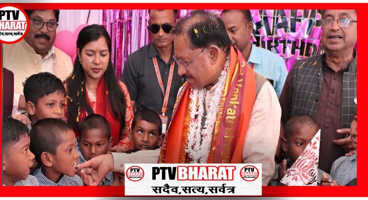 PTV BHARAT 21 FEBRUARY 2026 रायपुर मुख्यमंत्री विष्णुदेव साय ने अपने 62वें जन्मदिवस को जशपुर के बगिया स्थित बालक आश्रम के बच्चों के बीच जिस आत्मीयता और स्नेह के साथ मनाया, उसने इस दिन को बच्चों के जीवन की एक अविस्मरणीय स्मृति बना दिया। जैसे ही मुख्यमंत्री आश्रम परिसर पहुँचे, बच्चों के चेहरों पर खुशी की चमक दौड़ गई। वे दौड़कर उनके पास आए और कुछ ही क्षणों में पूरा वातावरण एक पारिवारिक मिलन जैसा हो गया। उस पल मुख्यमंत्री किसी पद पर आसीन व्यक्ति नहीं, बल्कि बच्चों के अपने स्नेही अभिभावक की तरह उनके बीच दिखाई दे रहे थे। मुख्यमंत्री साय ने बच्चों के साथ केक काटा और उनके साथ बैठकर बातें कीं। उन्होंने बच्चों के नाम पूछे, पढ़ाई के बारे में जाना, उनके सपनों को सुना और उन्हें आगे बढ़ने के लिए प्रोत्साहित किया। जब मुख्यमंत्री बच्चों से बात कर रहे थे, तब उनके चेहरे पर झलकता स्नेह और अपनत्व बच्चों के मन में गहरा विश्वास जगा रहा था। बच्चे भी पूरी सहजता से उनसे बातें करते हुए खुशी से चहकते रहे। आश्रम परिसर में उस समय जो दृश्य था, वह एक परिवार के बीच मनाए जा रहे उत्सव जैसा महसूस हो रहा था। मुख्यमंत्री श्री साय ने बच्चों को अपने हाथों से केक और चॉकलेट खिलाया। उन्होंने बच्चों के सिर पर हाथ फेरते हुए आशीर्वाद दिया और कहा कि वे मन लगाकर पढ़ाई करें, बड़े सपने देखें और जीवन में आगे बढ़कर अपने परिवार तथा प्रदेश का नाम रोशन करें। उन्होंने कहा कि आप सब बच्चों की मुस्कान मेरे जन्मदिन का सबसे बड़ा उपहार है। उनके इन स्नेहपूर्ण शब्दों ने बच्चों के मन को छू लिया। बच्चों की आँखों में चमक और चेहरे पर मुस्कान इस बात की गवाही दे रही थी कि यह पल उनके लिए कितना खास बन गया है।मुख्यमंत्री के रूप में स्नेही अभिभावक को अपने बीच पाकर बच्चों ने जिस खुशी और अपनत्व का अनुभव किया, वह लंबे समय तक उनकी स्मृतियों में रहेगा।