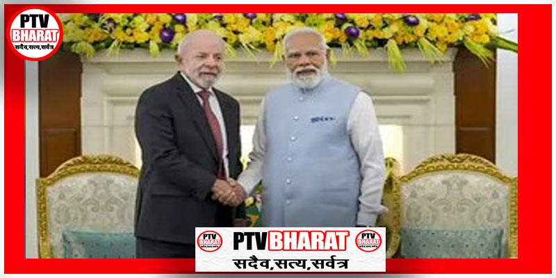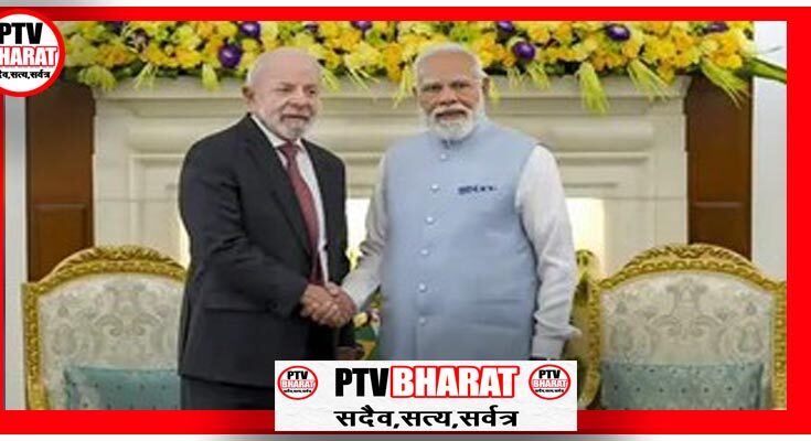 PTV BHARAT 21 FEBRUARY 2026 एजेंसी नई दिल्ली। ब्राजील के राष्ट्रपति लुइज इनासियो लूला डा सिल्वा भारत दैरे पर हैं। नई दिल्ली स्थित हैदराबाद हाउस में पीएम मोदी और राष्ट्रपति लूला द्विपक्षीय बैठक कर रहे हैं। बैठक में दोनों देशों के बीच बढ़ते व्यापार को लेकर चर्चा की। बैठक के दौरान पीएम मोदी ने कहा कि भारत और ब्राजील के रिश्तों को प्रेसिडेंट लूला के दूर की सोच और प्रेरणा देने वाली लीडरशिप से लंबे समय से फायदा हुआ है। ब्राजील लैटिन अमेरिका में भारत का सबसे बड़ा ट्रेड पार्टनर है। हम अगले 5 सालों में भारत-ब्राजील ट्रेड को USD 20 बिलियन से ज्यादा ले जाने के लिए प्रतिबद्ध हैं।