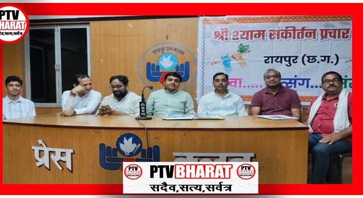 PTV BHARAT 22 FEBRUARY 2026 रायपुर-जिनकुशल दादाबाड़ी प्रांगण में 24 फरवरी को श्याम रंग का आयोजन किया जा रहा है । ये आयोजन श्री श्याम संकीर्तन प्रचार समिति रायपुर की ओर से किया जा रहा है। इस भक्तिमय कार्यक्रम मेंभजन गायाक मनोज शर्मा ग्वालियर, सुरभि चतुर्वेदी जयपुर से और पलाश शर्मा भटापारा रायपुर से अपनी प्रस्तुति देंगे। कार्यक्रम शाम सात बजे प्रारंभ होगा ये जानकारी आयोजन समितिने रायपुर प्रेस क्लब में पत्रकार वार्ता लेकर दी।