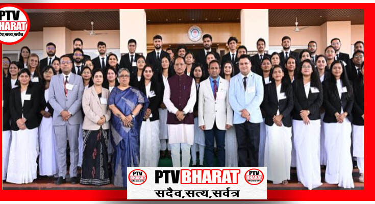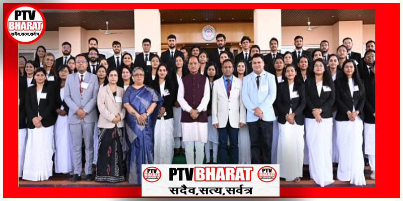 PTV BHARAT 12 MARCH 2026 मुख्यमंत्री विष्णु देव साय से आज विधानसभा स्थित उनके कार्यालय में छत्तीसगढ़ राज्य न्यायिक अकादमी, बिलासपुर के प्रशिक्षु न्यायाधीशों ने सौजन्य मुलाकात की।मुख्यमंत्री साय ने सभी प्रशिक्षु न्यायाधीशों को न्यायिक सेवा में चयन के लिए बधाई और शुभकामनाएं देते हुए कहा कि न्यायपालिका लोकतंत्र का महत्वपूर्ण और सशक्त स्तंभ है। आने वाले समय में आप सभी के कंधों पर समाज और न्याय व्यवस्था से जुड़ी बड़ी जिम्मेदारियां होंगी। उन्होंने विश्वास व्यक्त किया कि आप सभी निष्पक्षता, संवेदनशीलता और संविधान के मूल्यों के प्रति प्रतिबद्ध रहते हुए इन जिम्मेदारियों का सफलतापूर्वक निर्वहन करेंगे।मुख्यमंत्री साय ने कहा कि न्यायपालिका आमजन के अधिकारों की रक्षा और न्याय व्यवस्था में जनता के विश्वास को मजबूत करने में अहम भूमिका निभाती है। इस अवसर पर विधि विभाग की प्रमुख सचिव श्रीमती सुषमा सांवत, छत्तीसगढ़ राज्य न्यायिक अकादमी की संचालक श्रीमती निधि शर्मा तिवारी सहित अन्य अधिकारीगण उपस्थित थे।