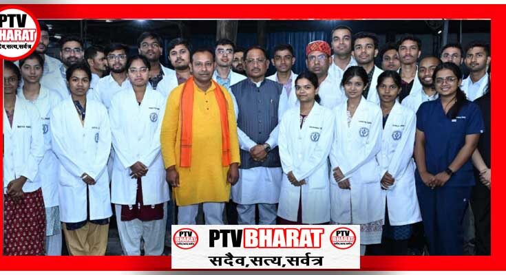 PTV BHARAT 16 MARCH 2026 रायपुर- मुख्यमंत्री विष्णु देव साय से राजधानी रायपुर स्थित मुख्यमंत्री निवास कार्यालय में चिकित्सक संगठन एवं मेडिकल छात्राओं ने सौजन्य मुलाकात की और प्रदेश को डीएम कार्डियोलॉजिस्ट की 2 सीट मिलने पर उनका आभार व्यक्त किया। मुख्यमंत्री विष्णु देव साय ने कहा कि हमारी सरकार प्रदेश में स्वास्थ्य सुविधाओं के विस्तार के लिए प्रतिबद्ध है। उन्होंने कहा कि शिक्षा और स्वास्थ्य के क्षेत्र में हमारी सरकार लगातार प्राथमिकता के साथ बेहतर कार्य कर रही है, ताकि प्रदेशवासियों को सहज और गुणवत्तापूर्ण स्वास्थ्य सुविधाओं का लाभ मिल सके।मुख्यमंत्री साय ने कहा कि प्रदेश में स्वास्थ्य केंद्रों में बुनियादी सुविधाओं के साथ-साथ उच्चस्तरीय स्वास्थ्य सेवाएं उपलब्ध कराने के लिए भी निरंतर प्रयास किए जा रहे हैं।मुख्यमंत्री साय ने कहा कि एक समय प्रदेश में केवल एक मेडिकल कॉलेज हुआ करता था, जिसमें लगभग 100 से 150 सीटें थीं। आज प्रदेश के विभिन्न स्थानों पर 14 मेडिकल कॉलेज स्थापित हो चुके हैं, जिनमें लगभग 1400 सीटें उपलब्ध हैं। इसके साथ ही फिजियोथेरेपी, नर्सिंग सहित अन्य उच्च शैक्षणिक संस्थान भी स्थापित हुए हैं, जिनका लाभ प्रदेश के विद्यार्थियों को मिल रहा है। उन्होंने कहा कि नवा रायपुर में मेडिको सिटी की स्थापना की जा रही है, जहां बड़े-बड़े सुपरस्पेशलिटी अस्पताल स्थापित किए जाएंगे, जिससे प्रदेश के लोगों को अत्याधुनिक चिकित्सा सुविधाएं उपलब्ध होंगी।