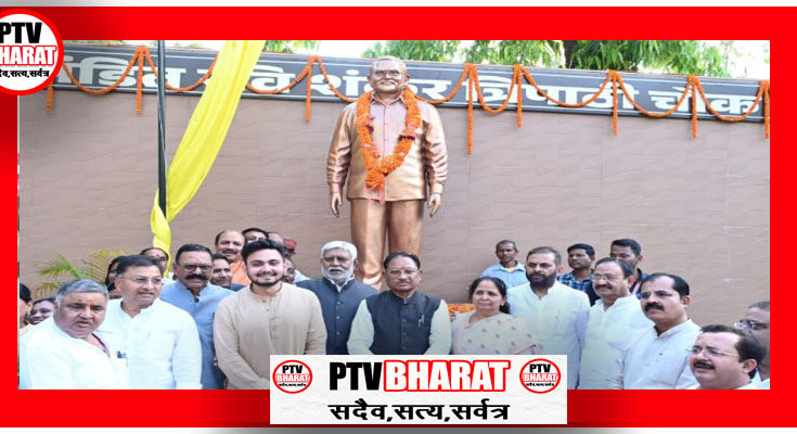 PTV BHARAT 09 APRIL 2026 रायपुर, मुख्यमंत्री विष्णु देव साय ने सरगुजा जिला प्रवास के दौरान अम्बिकापुर में पीडब्ल्यूडी ऑफिस के पास पंडित रविशंकर त्रिपाठी चौक में भटगांव विधानसभा के पूर्व विधायक पंडित रविशंकर त्रिपाठी की पुण्यतिथि पर उनकी प्रतिमा का अनावरण कर श्रद्धांजलि अर्पित की।मुख्यमंत्री साय ने इस अवसर पर कहा कि पंडित रविशंकर त्रिपाठी जी का जीवन जनसेवा, समर्पण और संगठन के प्रति निष्ठा का उत्कृष्ट उदाहरण है। उन्होंने कहा कि यह प्रतिमा केवल एक स्मारक नहीं, बल्कि उनके विचारों और कर्मठता की जीवंत प्रेरणा है, जो आने वाली पीढ़ियों को समाज और राष्ट्र के लिए कार्य करने की दिशा दिखाती रहेगी। मुख्यमंत्री ने कहा कि ऐसे व्यक्तित्वों का योगदान हमें यह सिखाता है कि जनसेवा ही सच्चा राष्ट्रधर्म है और इसी मार्ग पर चलकर हम एक सशक्त और समृद्ध छत्तीसगढ़ का निर्माण कर सकते हैं।इस दौरान कृषि मंत्री रामविचार नेताम, पर्यटन मंत्री राजेश अग्रवाल सहित अन्य गणमान्य नागरिक उपस्थित थे।