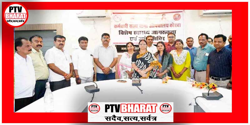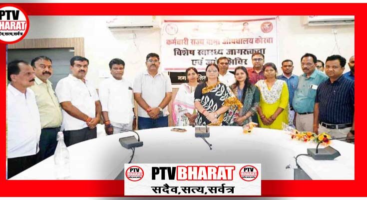 PTV BHARAT 23 APRIL 2026 मुख्यमंत्री विष्णुदेव साय एवं श्रम मंत्री लखनलाल देवांगन के निर्देशानुसार प्रदेश के असंगठित क्षेत्र के श्रमिकों एवं उनके परिवारजनों के स्वास्थ्य की जांच व स्वास्थ्य जागरूकता हेतु आयोजित किये जा रहे शिविरों की कड़ी में कल बुधवार को कर्मचारी राज्य बीमा औषधालय कोरबा द्वारा निगम कार्यालय साकेत में विशेष स्वास्थ्य जागरूकता व जांच शिविर लगाया गया। महापौर श्रीमती संजूदेवी राजपूत ने शिविर का समापन किया तथा मुख्यमंत्री सायं व श्रम मंत्री देवांगन के प्रति आभार व्यक्त करते हुये कर्मचारी राज्य बीमा औषधालय के कार्यो की सराहना की। मुख्यमंत्री विष्णुदेव साय के मार्गदर्शन एवं प्रदेश के श्रम मंत्री श्री लखनलाल देवांगन के दिशा निर्देशों के अनुरूप कर्मचारी राज्य बीमा सेवाएं के द्वारा सम्पूर्ण छत्तीसगढ़ के असंगठित क्षेत्र के श्रमिकों एवं उनके परिवारजनों के स्वास्थ्य जांच व स्वास्थ्य जागरूकता के संबंध में स्वास्थ्य व जांच शिविर लगाये जा रहे हैं। इसी कड़ी में नगर पालिक निगम कोरबा के मुख्य प्रशासनिक भवन साकेत में बुधवार को प्रातः 11 बजे से शाम 05 बजे तक विशेष स्वास्थ्य जागरूकता व जांच शिविर का आयोजन किया गया, कर्मचारी राज्य बीमा औषधालय के द्वारा आयोजित उक्त महत्वपूर्ण शिविर में निगम के 500 से अधिक अधिकारी कर्मचारियों ने अपना स्वास्थ्य परीक्षण कराया। इस दौरान ब्लड प्रेशर, शुगर, जोड़ो का दर्द, सरदर्द, अनिद्रा, हाईपरटेंशन, फीवर, एलर्जी, लीवर, किडनी व हृदय से जुड़ी समस्याओं सहित विविध रोगों की जांच विशेषज्ञ चिकित्सकों द्वारा की गई, शिविर में विभिन्न बीमारियों की दवाओं का पर्याप्त स्टाक रखा गया था, अधिकारी कर्मचारियों को चिकित्सकों ने आवश्यकतानुसार दवाईयॉं भी प्रदान की तथा विभिन्न चिकित्सकीय परामर्श व सुझाव दिया। महापौर श्रीमती संजूदेवी राजपूत ने उक्त विशेष स्वास्थ्य जागरूकता व जांच शिविर का समापन किया तथा कर्मचारी राज्य बीमा औषधालय कोरबा के चिकित्सकों व अन्य अधिकारी कर्मचारियों के कार्यो की सराहना करते हुये प्रदेश के मुख्यमंत्री विष्णुदेव साय व उद्योग मंत्री लखनलाल देवांगन के प्रति आभार व्यक्त किया।