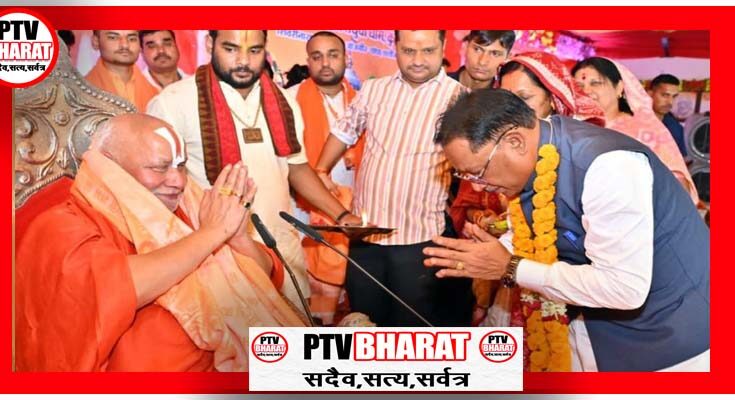 PTV BHARAT 27 APRIL 2026 छत्तीसगढ़ – मुख्यमंत्री विष्णु देव साय आज जांजगीर-चांपा जिले के शिवरीनारायण स्थित राम मिलेंगे आश्रम, तेंदुवा धाम कुरियारी में आयोजित 9 दिवसीय श्रीराम कथा में शामिल हुए। उन्होंने अपनी धर्मपत्नी श्रीमती कौशल्या साय के साथ आश्रम पहुंचकर विधिवत पूजा-अर्चना की तथा प्रदेशवासियों की सुख, समृद्धि एवं खुशहाली की कामना की। इस दौरान उन्होंने पद्म विभूषण से सम्मानित जगद्गुरु रामभद्राचार्य महाराज से आशीर्वाद प्राप्त किया।