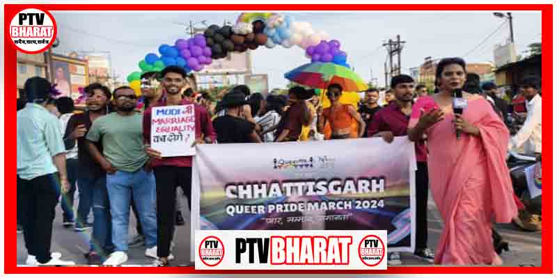 PTV BHARAT 30 09 2024 RAIPUR म्यूजिक, डांस और नारों के साथ रायपुर में क्वियर प्राइड मार्च का आयोजन किया गया। यह प्राइड मार्च रविवार, 29 सितंबर 2024 को ‘क्वियरगढ़’ और ‘मितवा संकल्प समिति’ के निर्देशन में आयोजित किया गया। इस मार्च में छत्तीसगढ़ और भारत के विभिन्न हिस्सों से आए समुदाय के सदस्य और सहयोगी शामिल हुए। प्राइड मार्च दोपहर 2 बजे भारत माता चौक, शंकर नगर चौक से शुरू होकर मरीन ड्राइव, तेलीबांधा तालाब पर समाप्त हुआ। इस पूरे मार्च के दौरान LGBTQ समुदाय के सदस्य प्रोग्रेसिव प्राइड फ्लैग को थामे हुए थे। रायपुर के सभी नागरिकों ने इस मार्च का समर्थन किया और प्रेम, स्वीकृति और समानता का संदेश फैलाया। कई स्कूल और कॉलेज के छात्र भी इसमें भाग ले रहे थे, जो समानता की मांग करते हुए पोस्टर लेकर चल रहे थे। गर्म धूप का भी कोई असर लोगों के उत्साह पर नहीं पड़ा, जो स्वतंत्रता और गर्व के लिए एकजुट होकर मार्च में शामिल हुए थे। कार्यक्रम का दूसरा चरण शाम 5 बजे तेलीबांधा तालाब पर सांस्कृतिक कार्यक्रम के साथ शुरू हुआ।