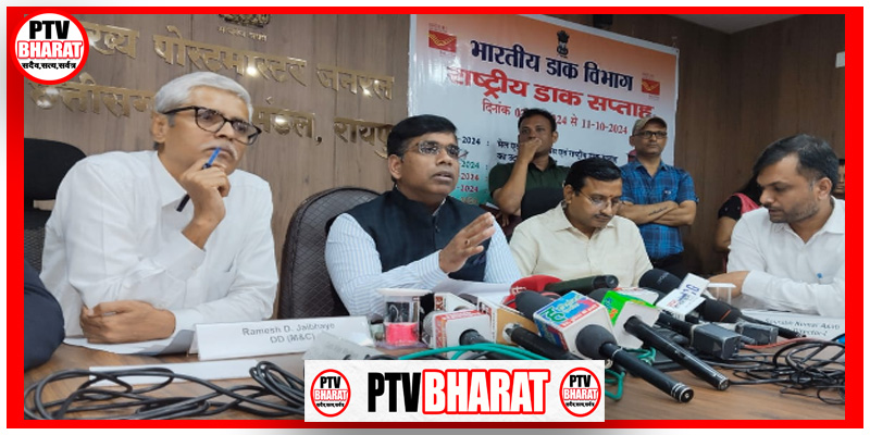 PTV BHARAT रायपुर 09 10 2024 मुख्य पोस्ट मास्टर जनरल दिनेश कुमार मिस्त्री ने पत्रकार वार्ता लेकर जानकारी दी की 7 तारीख से लेकर 11 अक्टूबर तक विश्व डाक दिवस के उपलक्ष्य में विभिन्न कार्यक्रम का आयोजन किया जा रहा है ।मेल एवं पार्सल दिवस फिलाटेली दिवस विश्व डाक दिवस अंत्योदय दिवस के साथ वित्तीय सशक्तीकरण दिवस का आयोजन किया जा रहा है।फिलाटेली के प्रति रूघान बढ़ाने के लिए विभाग द्वारा प्रोत्साहन और पुरस्कार की व्यवस्थ की गई है।इसके अलावा पत्र लेखन प्रतियोगिता का आयोजन भी किया गया जिसमें महिमा तनीष्का और संस्कृति ने बेहतरीन प्रदर्शन किया उन्हे नगद पुरस्कार प्रदान किए गए।