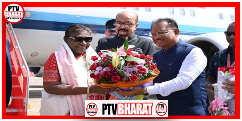 PTV BHARAT रायपुर, 25 अक्टूबर 2024/राष्ट्रपति श्रीमती द्रौपदी मुर्मु दो दिवसीय प्रवास पर आज छत्तीसगढ़ की राजधानी रायपुर पहुंची। राष्ट्रपति श्रीमती मुर्मु का माना विमानतल पहुंचने पर राज्यपाल श्री रमेन डेका और मुख्यमंत्री श्री विष्णु देव साय ने उनका आत्मीय स्वागत किया। इस अवसर पर उपमुख्यमंत्री श्री अरूण साव, सांसद रायपुर श्री बृजमोहन अग्रवाल, विधायक श्री खुशवंत सिंह साहेब ने राष्ट्रपति श्रीमती मुर्मु को पुष्प गुच्छ भेंटकर उनका स्वागत किया।