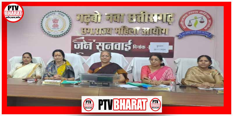 PTV BHARAT रायपुर/21 नवंबर 2024 / छत्तीसगढ़ राज्य महिला आयोग की अध्यक्ष डॉ. किरणमयी नायक एवं सदस्यगणों श्रीमती सरला कोसरिया, श्रीमती लक्ष्मी वर्मा, श्रीमती प्रियवंदा सिंह जुदेव, श्रीमती ओजस्वी मंडावी, एवं सुश्री दीपिका सोरी ने आज छत्तीसगढ़ राज्य महिला आयोग के कार्यालय रायपुर में महिला उत्पीड़न से संबंधित प्रकरणों पर सुनवाई की। आयोग की अध्यक्ष डॉ. किरणमयी नायक की अध्यक्षता में आज 287 वी. सुनवाई हुई। रायपुर जिले में कुल 138 वी. जनसुनवाई ।