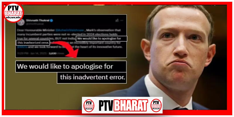 नई दिल्ली। मेटा के सीईओ मार्क जुकरबर्ग के बयान पर अब कंपनी ने भारत से माफी मांगी है। कंपनी ने कहा है कि यह गलती अनजाने में हुई है। मेटा इंडिया के वाइस प्रेसिडेंट ने सोशल मीडिया पर पोस्ट कर सार्वजनिक रूप से खेद प्रकट किया।