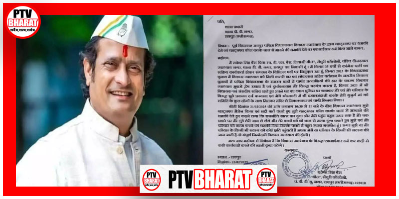 PTV BHARAT 28 FEB 2025 रायपुर। पूर्व विधायक रायपुर पश्चिम विधानसभा विकास उपाध्याय के द्वार व्हाट्सअप पर राकेश सिंह बैस को जान से मारने की धमकी भरा मैसेज और व्हाट्सअप कॉल का मामला सामने आया है। जिसकी शिकायत पीड़ित राकेश सिंह बैस ने पुलिस के उच्च अधिकारी समेत छत्तीसगढ़ के डीजीपी अरुण देव गौतम से भी की है। बताया कि वो विगत 35 वर्षों से कांग्रेस पार्टी का सक्रिय कार्यकर्ता होकर संगठन के विभिन्न पदों पर नियुक्त रहा है। विगत 2023 के विधानसभा चुनाव में विकास उपाध्याय को मिली करारी हार एवं लोकसभा सहित वर्तमान के नगरीय निकाय चुनावों में पश्चिम विधानसभा के समस्त वाडों में पार्षद प्रत्याशियों की हार के कारण विकास उपाध्याय ने उनसे द्वेष रखता था और विकास उपाध्याय ने राकेश बैस के खिलाफ षडयंत्र करता है।