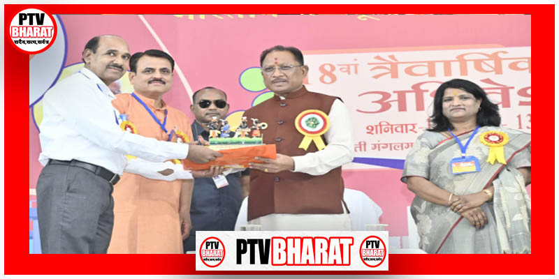 PTV BHARAT रायपुर 12 अप्रैल 2025/ मुख्यमंत्री श्री विष्णु देव साय आज राजधानी रायपुर के गुढ़ियारी में आयोजित अखिल भारतीय विद्युत मजदूर महासंघ के 18वें त्रैवार्षिक अधिवेशन में शामिल हुए।