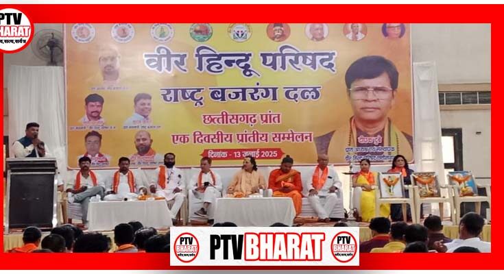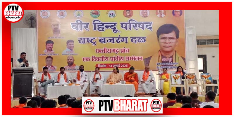 PTV BHARAT वीर हिन्दू परिषद, राष्ट्र बजरंग दल, वीर हिन्दू महिला परिषद छत्तीसगढ़ प्रांत का एक दिवसीय सम्मेलन राजधानी रायपुर के श्याम नगर स्थित श्री झुले लाल धाम में संपन्न हुआ। सनातन समाज के उक्त आयोजन में मुख्य अतिथि भगवताचार्य संत श्री मनोज शास्त्री, वीर हिन्दू परिषद छत्तीसगढ़ प्रांत संगठन मंत्री उत्तम मिश्रा, वीर हिन्दू परिषद छत्तीसगढ़ प्रांत अध्यक्ष दीपक दुबे, वीर हिन्दू परिषद प्रांत महामंत्री भुनेश्वर सेन, वीर हिन्दू किसान परिषद प्रांत अध्यक्ष सुनील साहू, राष्ट्र बजरंग दल प्रांत अध्यक्ष भीम साह, राष्ट्र बजरंग दल प्रांत महामंत्री कुंदन फेकर, वीर हिन्दू महिला परिषद से शिल्पी भट्टाचार्य, अनुभा दुबे, किरण कौर, प्रिया शर्मा सहित वीर हिन्दू परिषद के सभी आयामों के सैकड़ों कार्यकर्ता उपस्थित थे। उपस्थित कार्यकर्ताओं को संबोधित करते हुए भगवताचार्य मनोज शास्त्री ने सनातन समाज को संगठित होकर रहने की बात कही। वीर हिन्दू परिषद प्रांत अध्यक्ष दीपक दुबे ने अपने उद्बोधन में कहा कि गौ रक्षा, धर्मांतरण, राम मंदिर, मथुरा काशी जैसे विषयों को लेकर जमीनी स्तर पर कार्य करने वाले हिन्दू योद्धाओं की चिंता करने वाला कोई नहीं है। वीर हिन्दू परिषद उन्हे आर्थिक, शारीरिक और बौद्धिक रूप से सक्षम बनाए जाने की दिशा में काम करेगा।