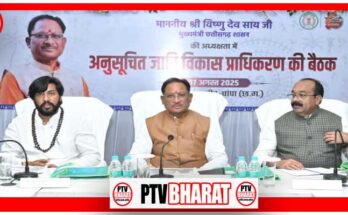 PTV BHARAT रायपुर, 7 अगस्त 2025/मुख्यमंत्री श्री विष्णु देव साय की अध्यक्षता में आज जांजगीर-चांपा जिले के जिला पंचायत सभाकक्ष में आयोजित अनुसूचित जाति विकास प्राधिकरण की बैठक में प्राधिकरण …